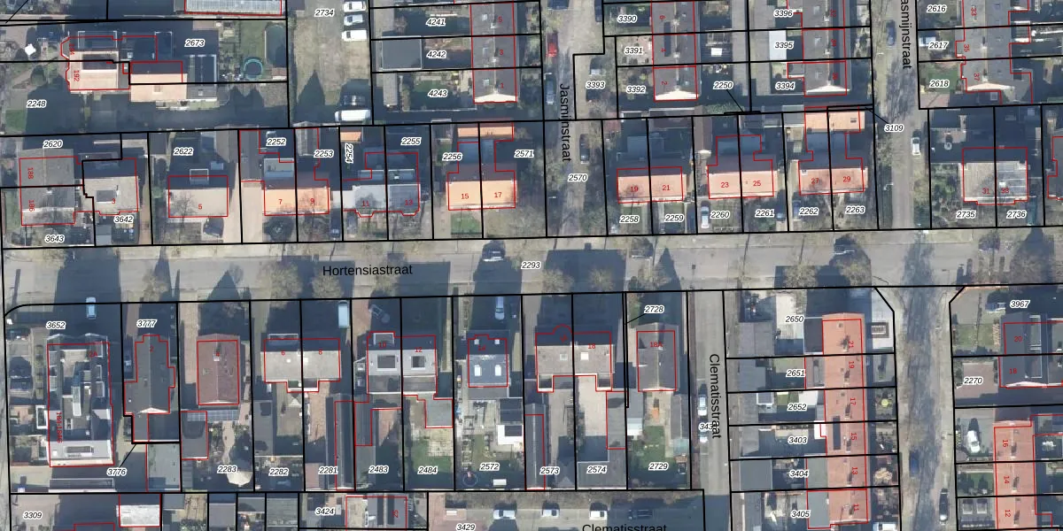 Gebruik de zoekbalk of klik op een perceel om informatie over het perceel te bekijken.