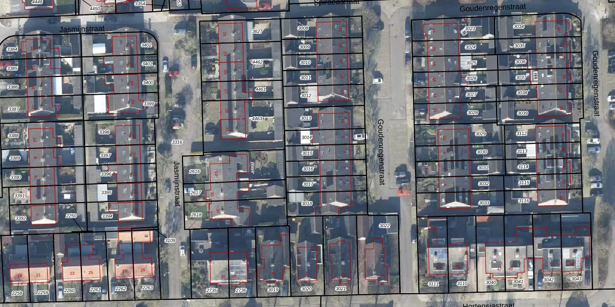 Gebruik de zoekbalk of klik op een perceel om informatie over het perceel te bekijken.