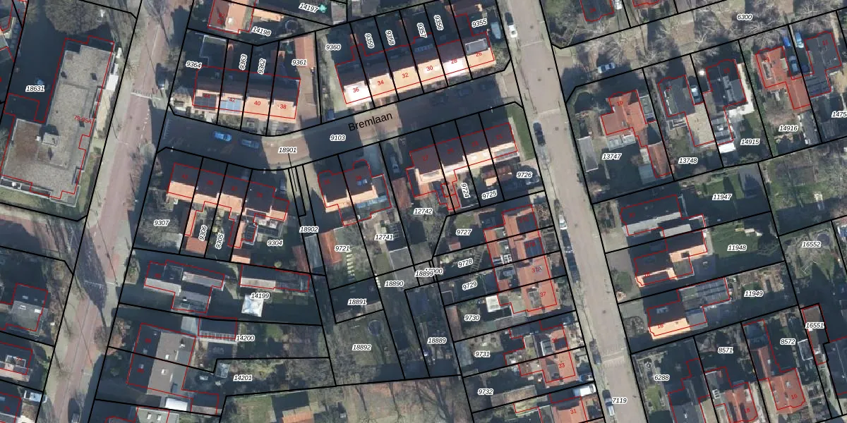 Gebruik de zoekbalk of klik op een perceel om informatie over het perceel te bekijken.