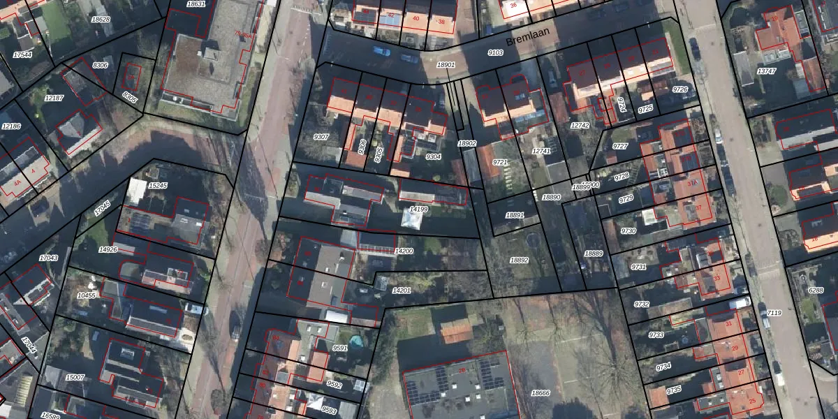 Gebruik de zoekbalk of klik op een perceel om informatie over het perceel te bekijken.