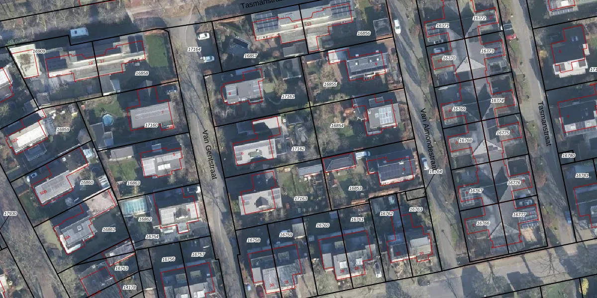 Gebruik de zoekbalk of klik op een perceel om informatie over het perceel te bekijken.