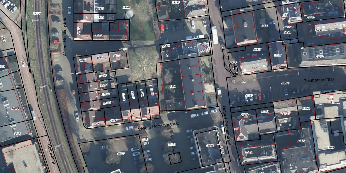 Gebruik de zoekbalk of klik op een perceel om informatie over het perceel te bekijken.