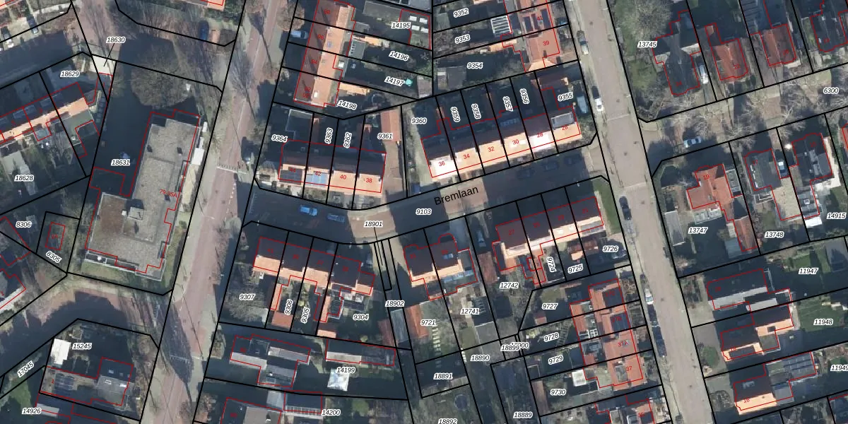 Gebruik de zoekbalk of klik op een perceel om informatie over het perceel te bekijken.
