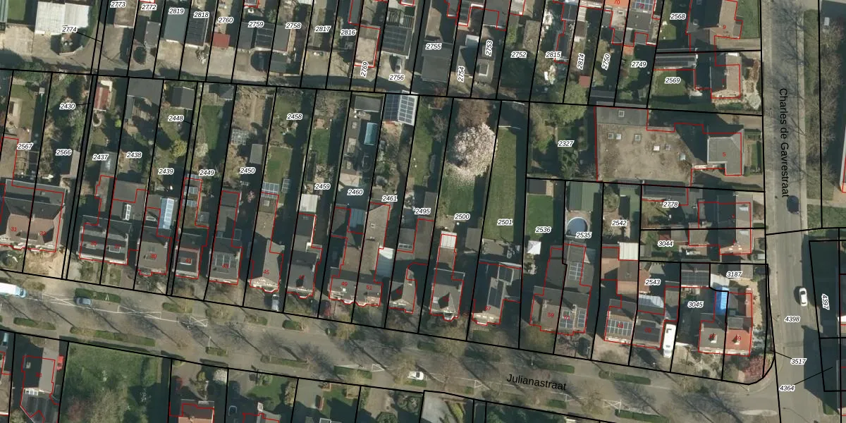 Gebruik de zoekbalk of klik op een perceel om informatie over het perceel te bekijken.