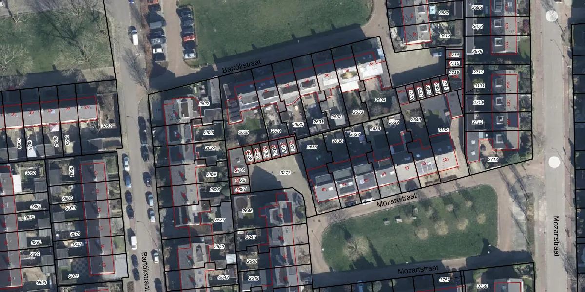 Gebruik de zoekbalk of klik op een perceel om informatie over het perceel te bekijken.