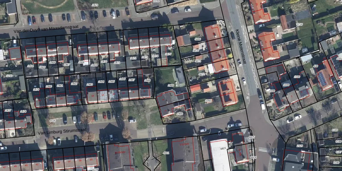 Gebruik de zoekbalk of klik op een perceel om informatie over het perceel te bekijken.