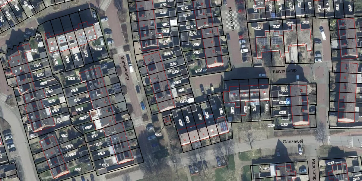 Gebruik de zoekbalk of klik op een perceel om informatie over het perceel te bekijken.