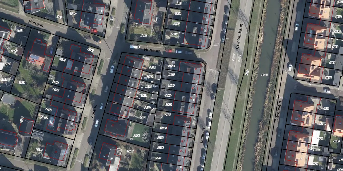 Gebruik de zoekbalk of klik op een perceel om informatie over het perceel te bekijken.