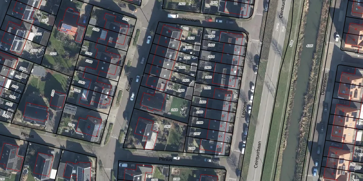 Gebruik de zoekbalk of klik op een perceel om informatie over het perceel te bekijken.
