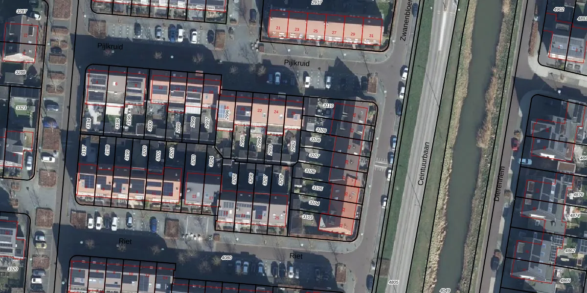 Gebruik de zoekbalk of klik op een perceel om informatie over het perceel te bekijken.
