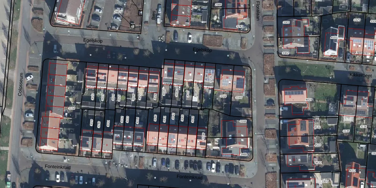 Gebruik de zoekbalk of klik op een perceel om informatie over het perceel te bekijken.