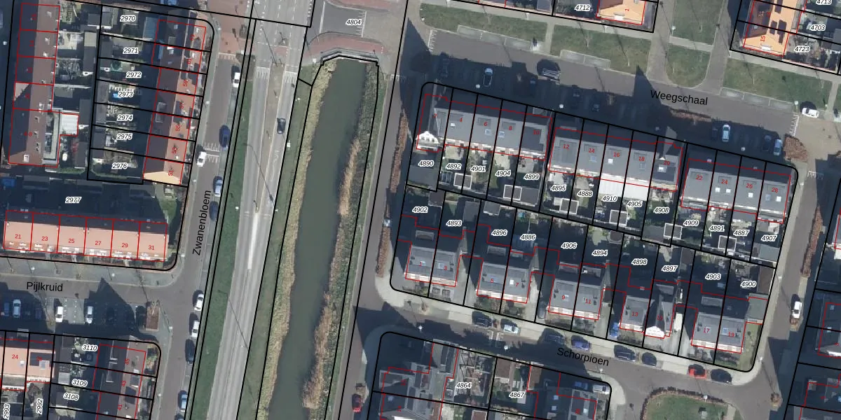 Gebruik de zoekbalk of klik op een perceel om informatie over het perceel te bekijken.