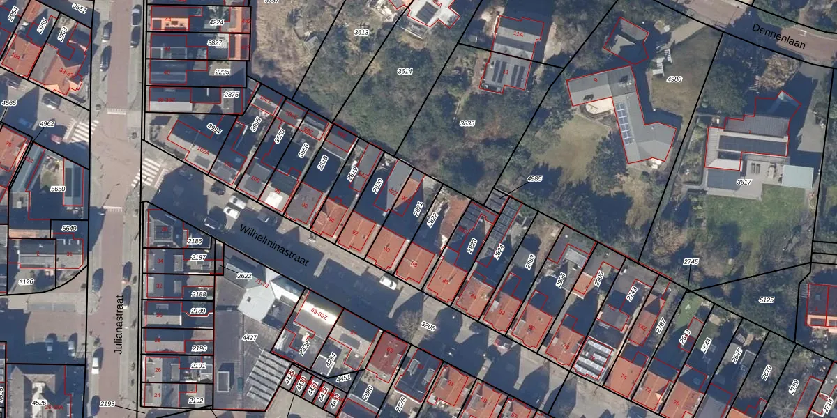 Gebruik de zoekbalk of klik op een perceel om informatie over het perceel te bekijken.
