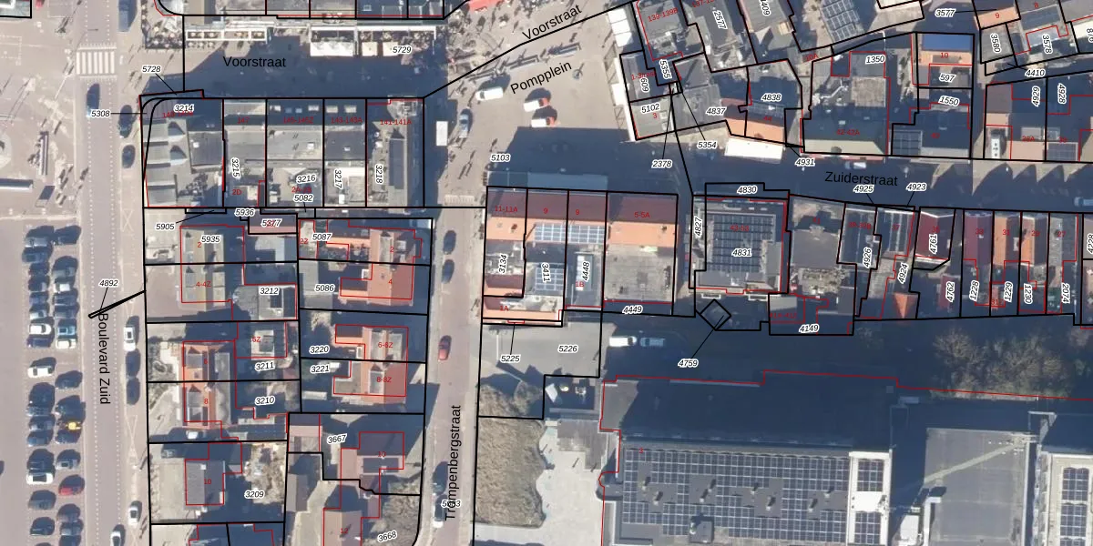 Gebruik de zoekbalk of klik op een perceel om informatie over het perceel te bekijken.