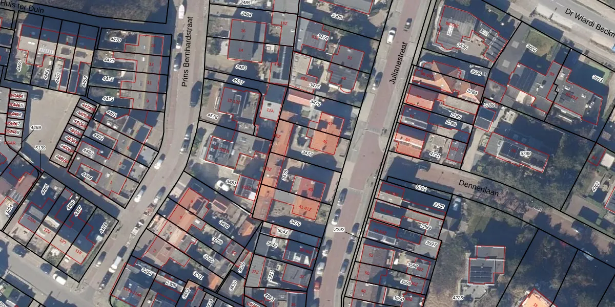 Gebruik de zoekbalk of klik op een perceel om informatie over het perceel te bekijken.