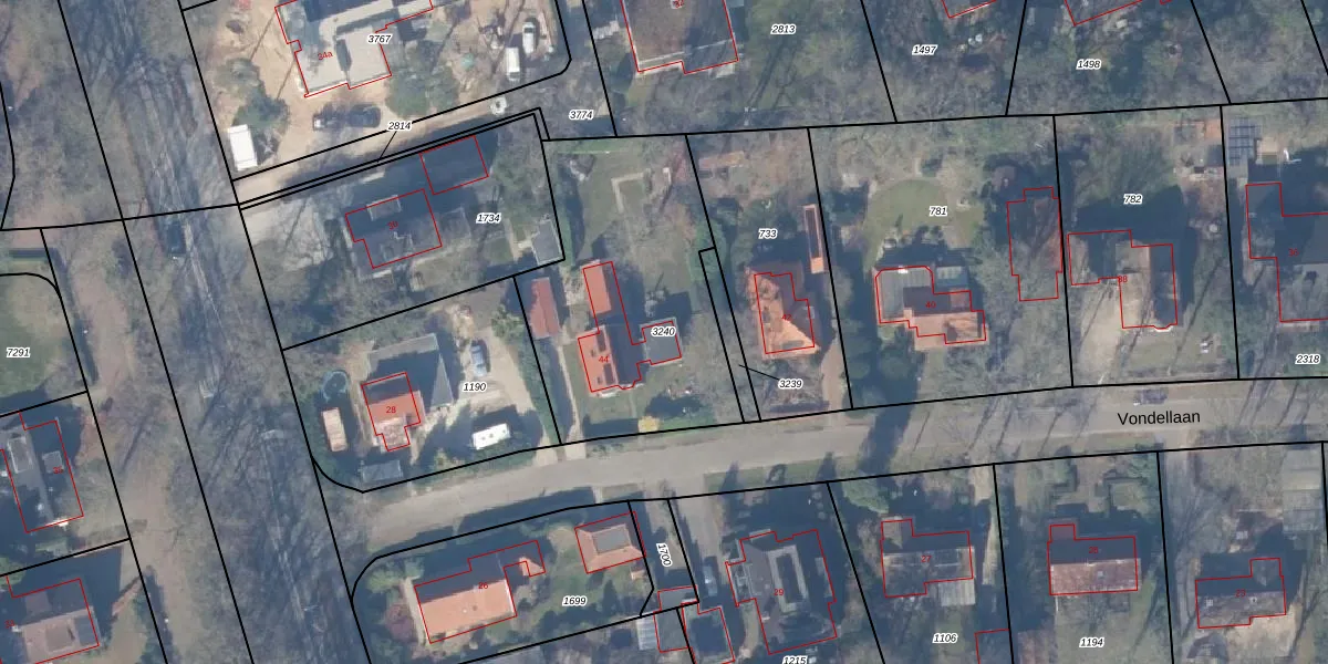 Gebruik de zoekbalk of klik op een perceel om informatie over het perceel te bekijken.