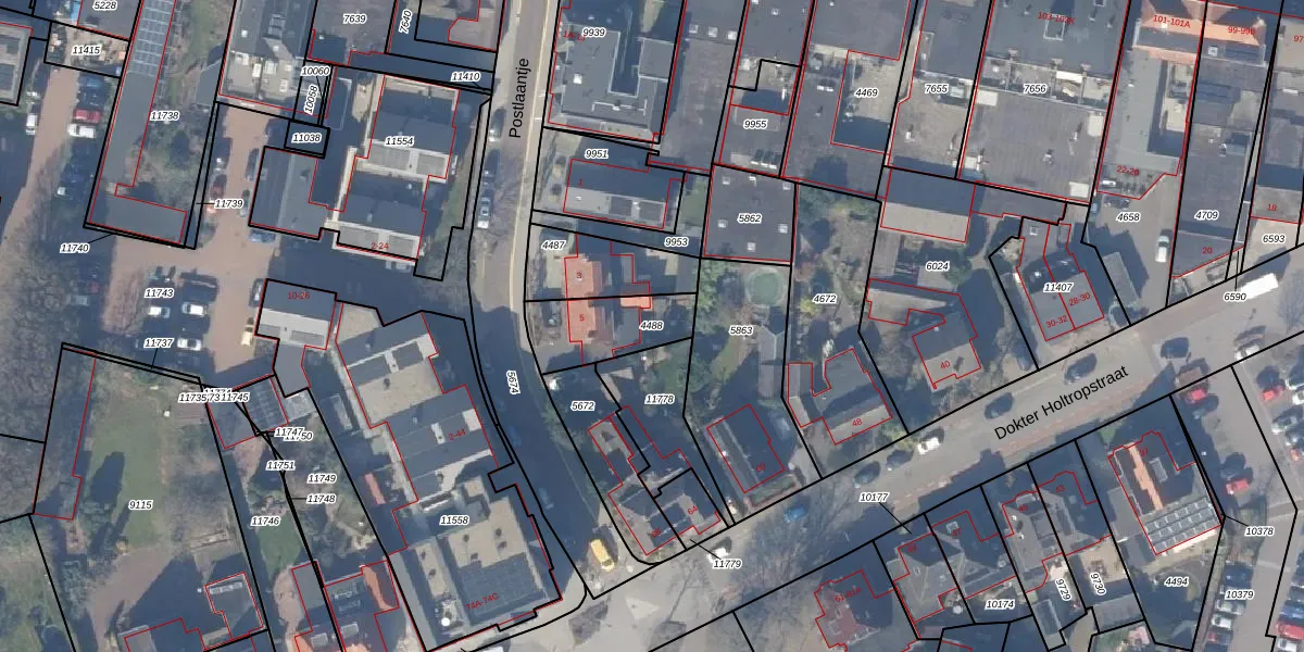 Gebruik de zoekbalk of klik op een perceel om informatie over het perceel te bekijken.