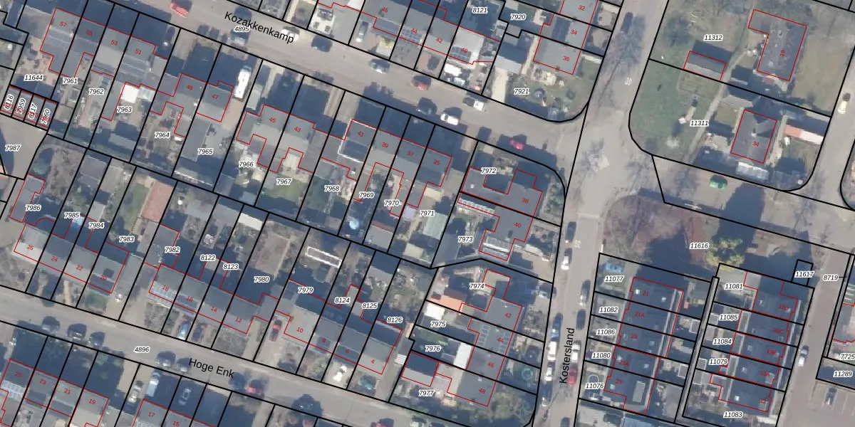 Gebruik de zoekbalk of klik op een perceel om informatie over het perceel te bekijken.