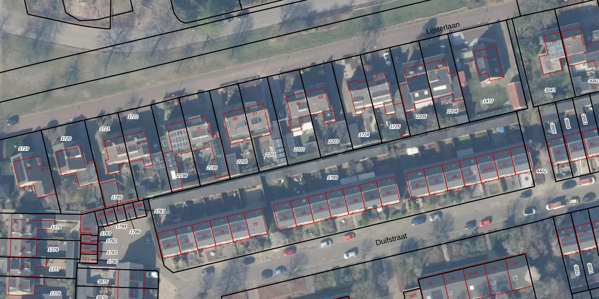Gebruik de zoekbalk of klik op een perceel om informatie over het perceel te bekijken.