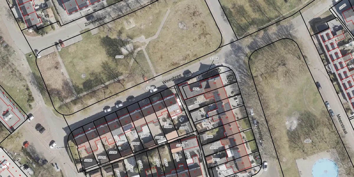 Gebruik de zoekbalk of klik op een perceel om informatie over het perceel te bekijken.