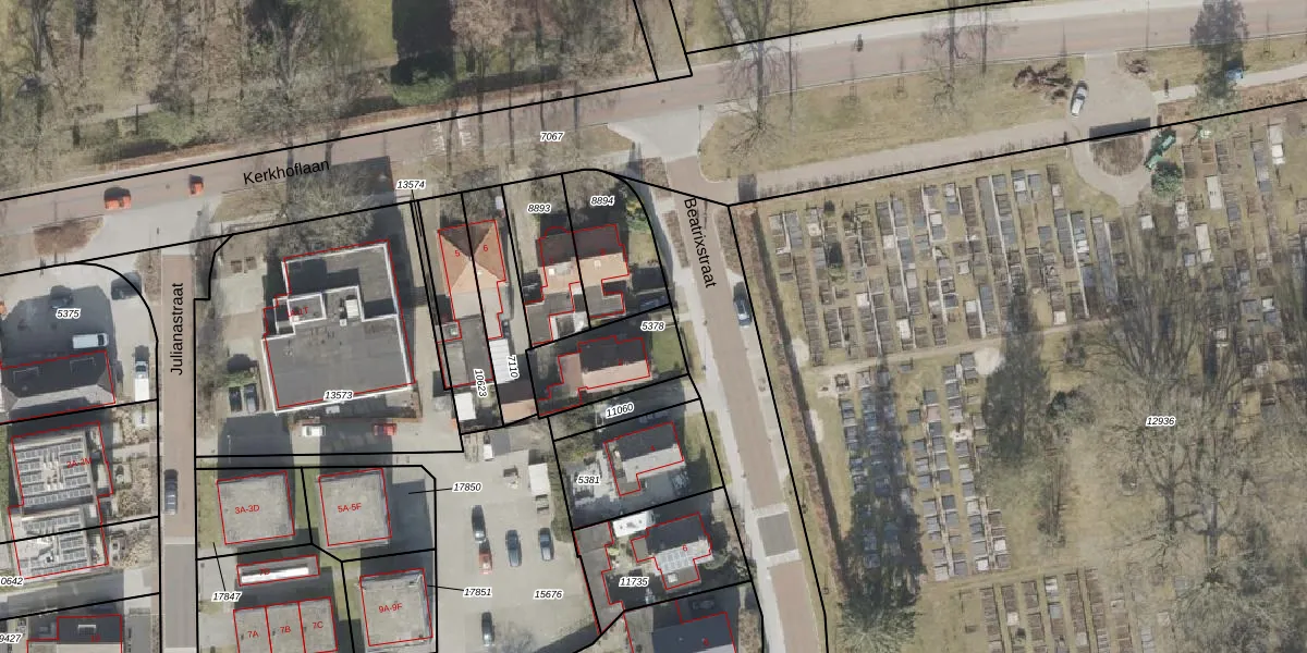Gebruik de zoekbalk of klik op een perceel om informatie over het perceel te bekijken.