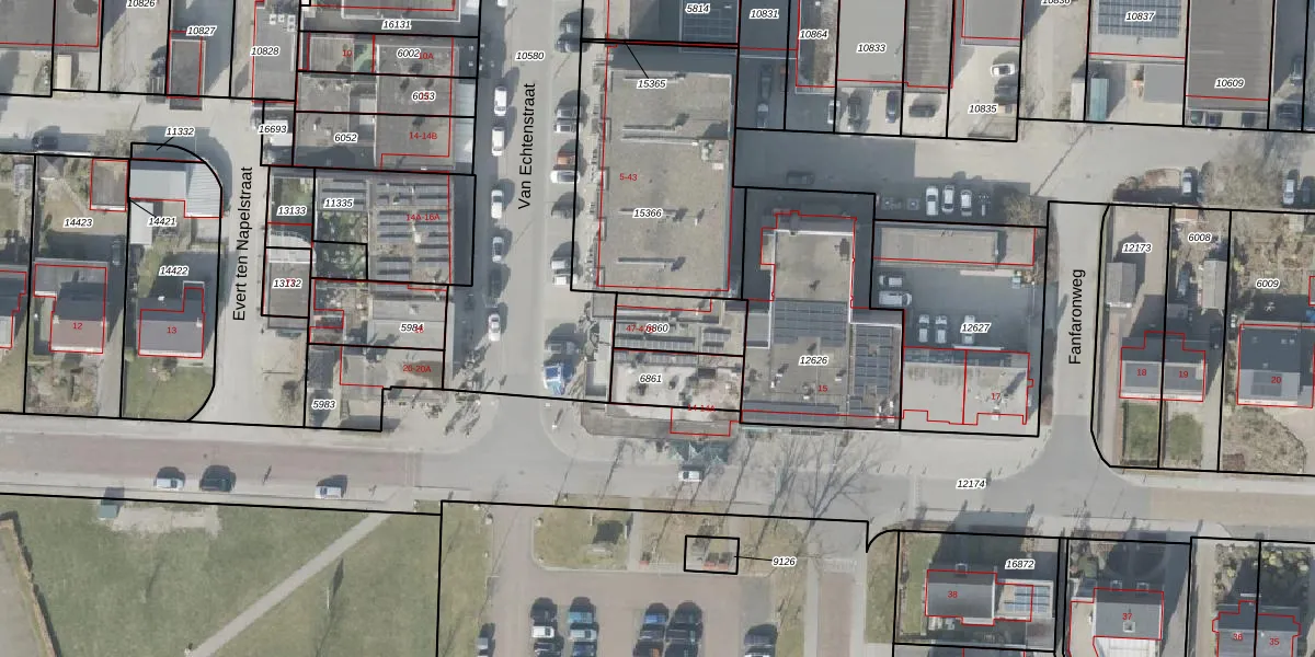 Gebruik de zoekbalk of klik op een perceel om informatie over het perceel te bekijken.