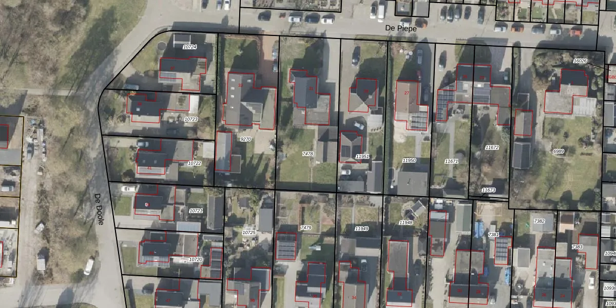 Gebruik de zoekbalk of klik op een perceel om informatie over het perceel te bekijken.