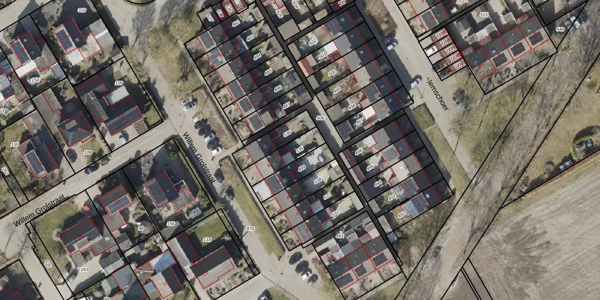 Gebruik de zoekbalk of klik op een perceel om informatie over het perceel te bekijken.