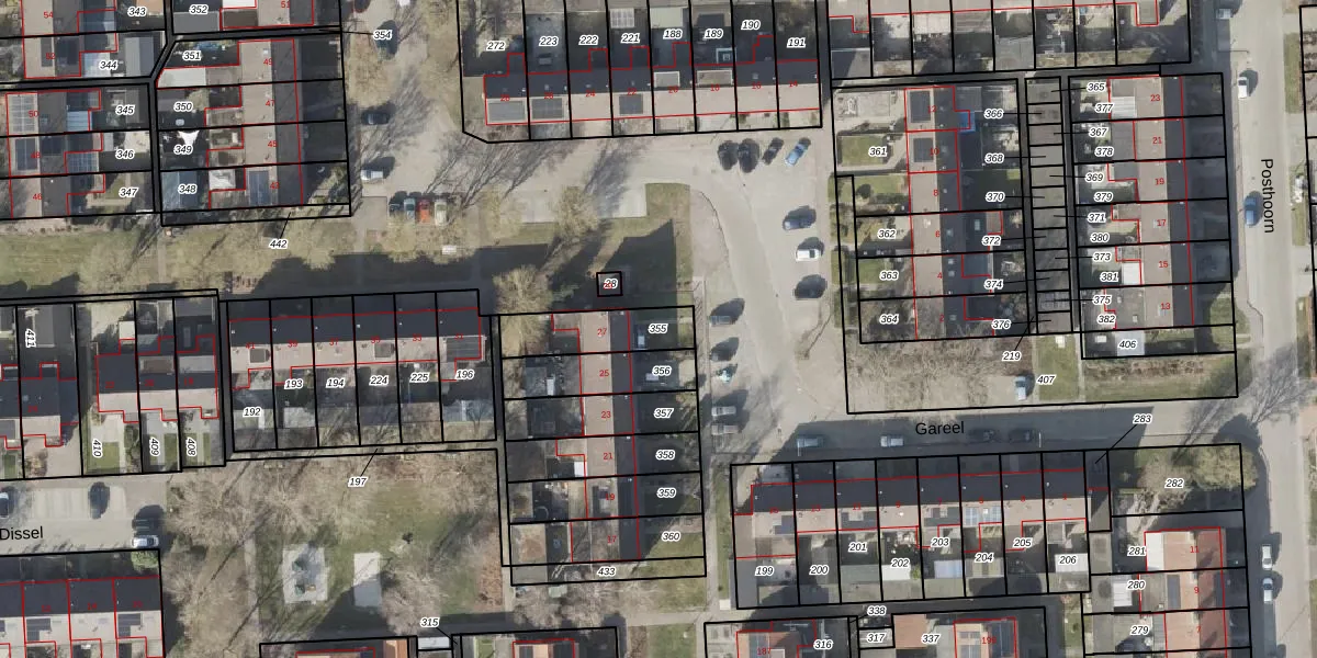 Gebruik de zoekbalk of klik op een perceel om informatie over het perceel te bekijken.
