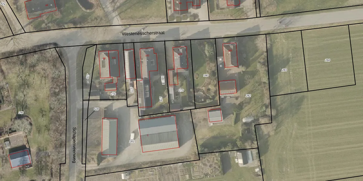 Gebruik de zoekbalk of klik op een perceel om informatie over het perceel te bekijken.