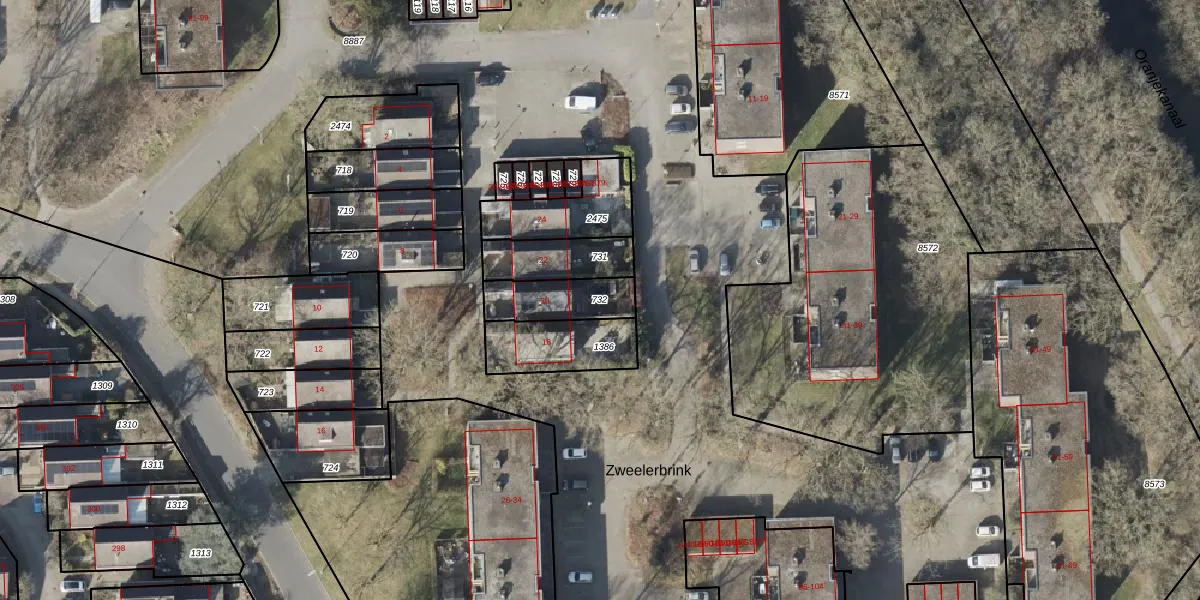 Gebruik de zoekbalk of klik op een perceel om informatie over het perceel te bekijken.