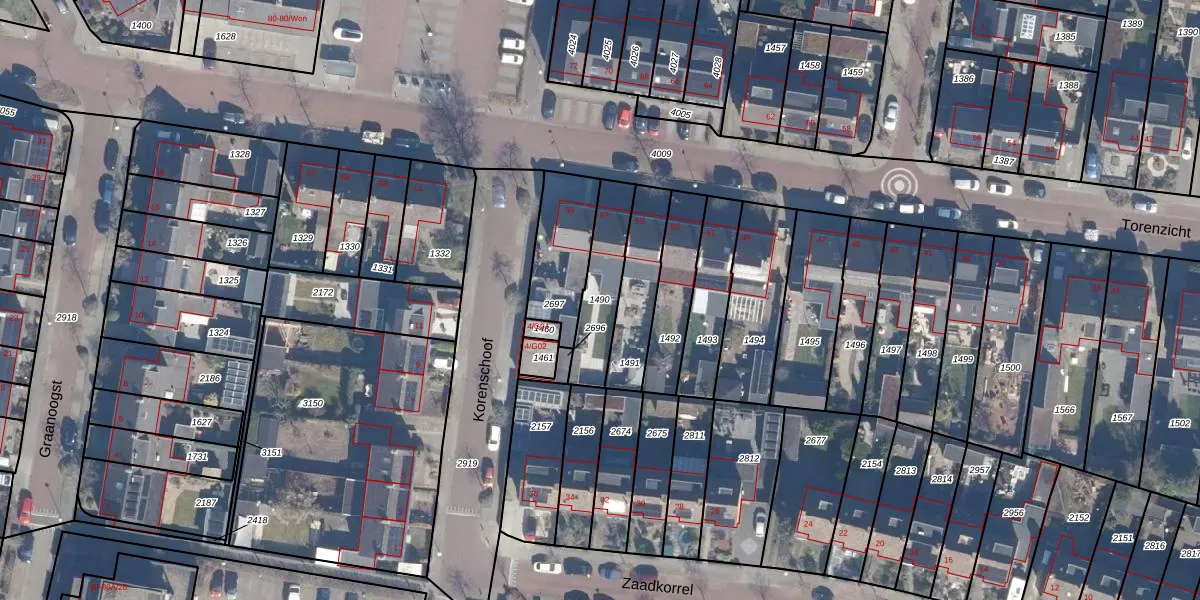 Gebruik de zoekbalk of klik op een perceel om informatie over het perceel te bekijken.