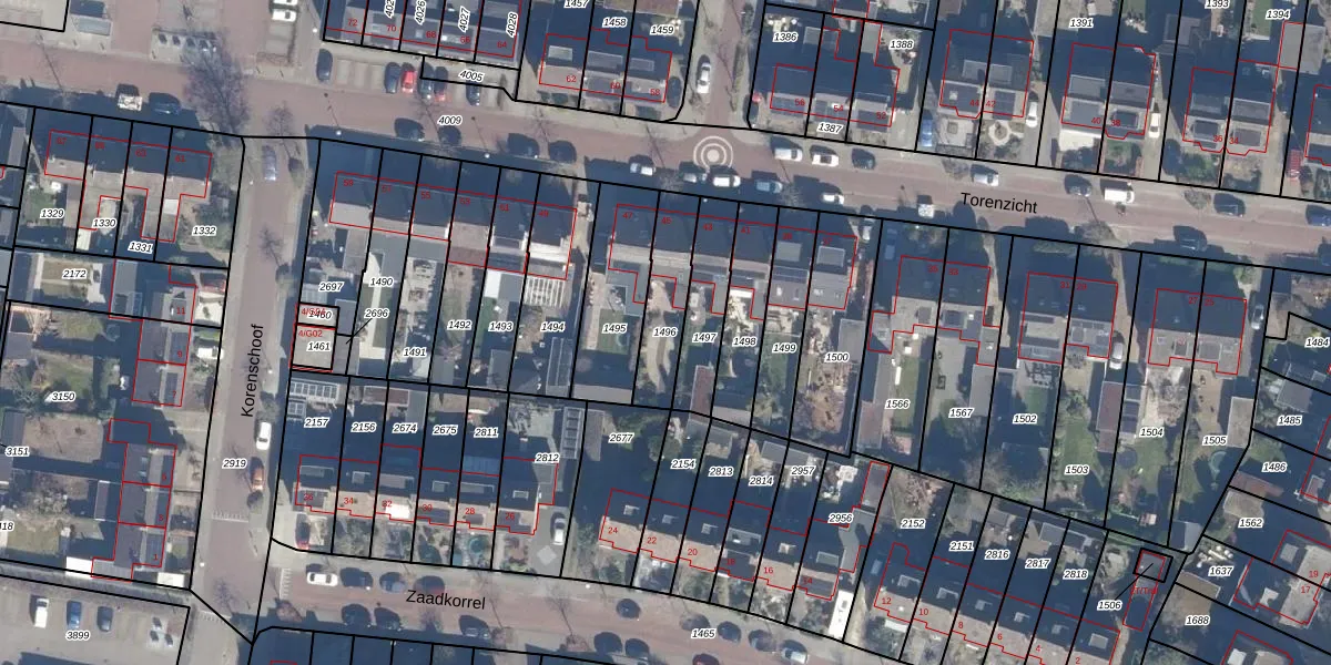 Gebruik de zoekbalk of klik op een perceel om informatie over het perceel te bekijken.