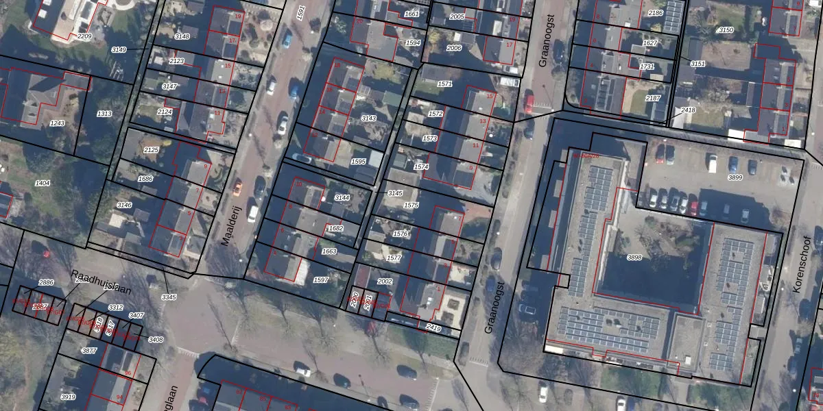 Gebruik de zoekbalk of klik op een perceel om informatie over het perceel te bekijken.