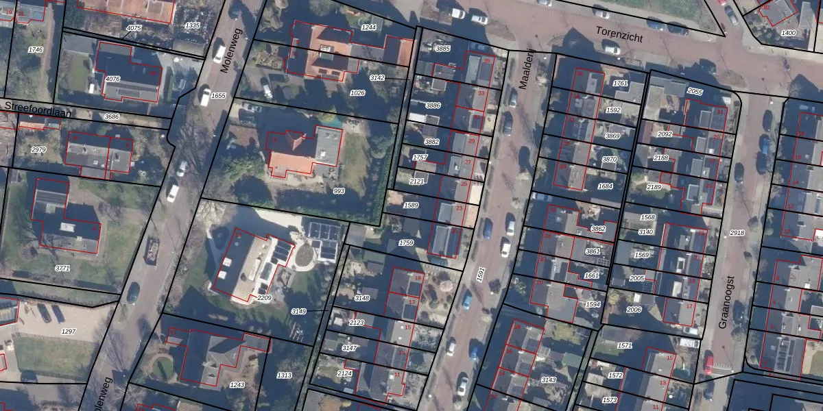 Gebruik de zoekbalk of klik op een perceel om informatie over het perceel te bekijken.