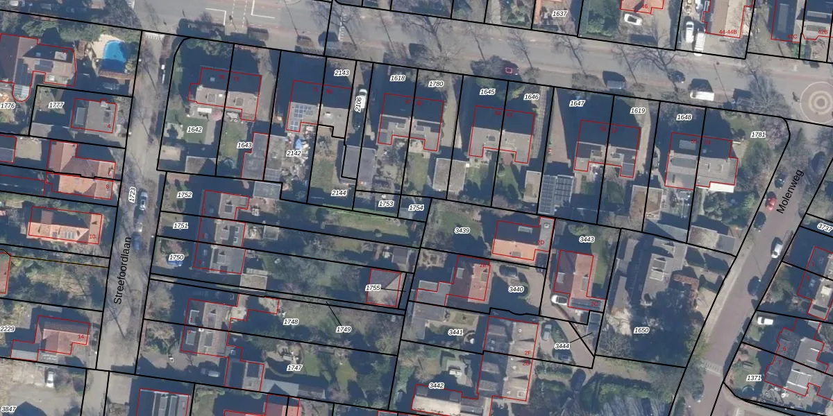 Gebruik de zoekbalk of klik op een perceel om informatie over het perceel te bekijken.
