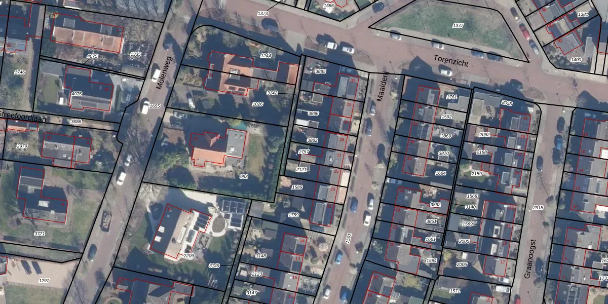 Gebruik de zoekbalk of klik op een perceel om informatie over het perceel te bekijken.