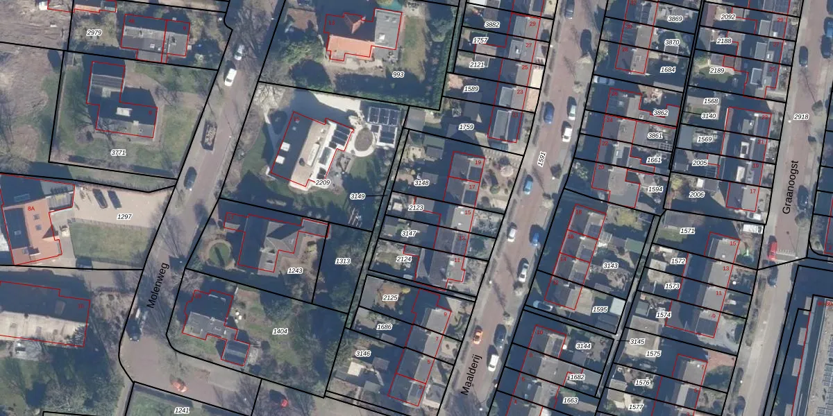 Gebruik de zoekbalk of klik op een perceel om informatie over het perceel te bekijken.