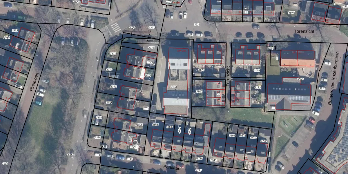 Gebruik de zoekbalk of klik op een perceel om informatie over het perceel te bekijken.