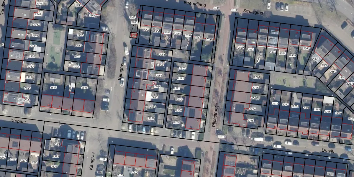 Gebruik de zoekbalk of klik op een perceel om informatie over het perceel te bekijken.