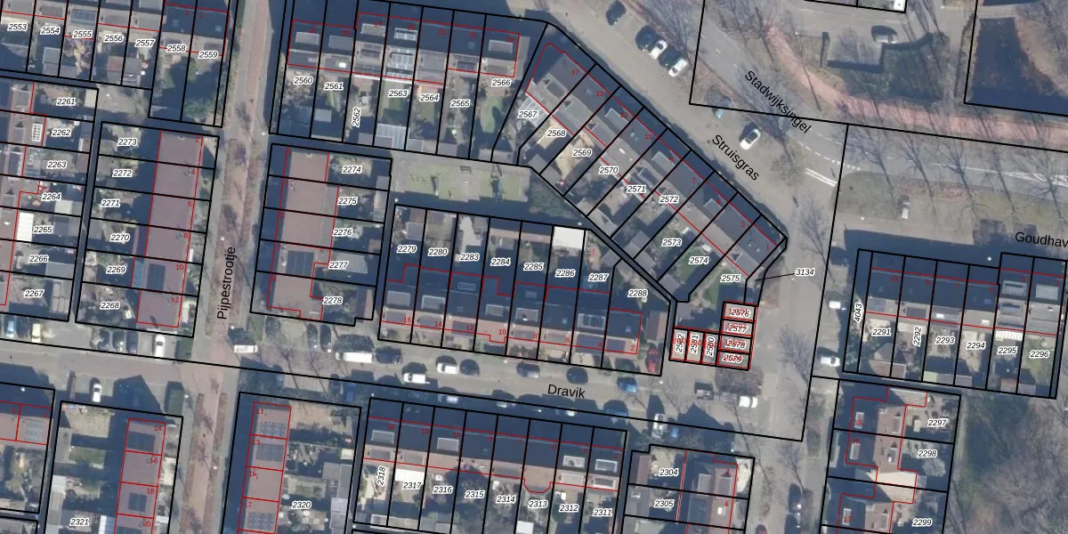 Gebruik de zoekbalk of klik op een perceel om informatie over het perceel te bekijken.