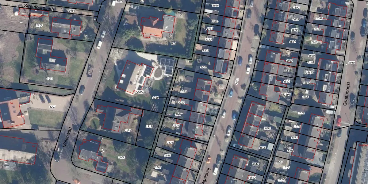 Gebruik de zoekbalk of klik op een perceel om informatie over het perceel te bekijken.