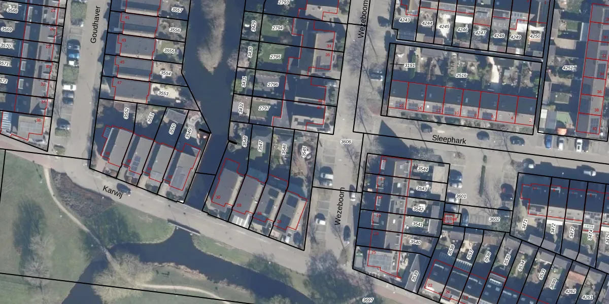Gebruik de zoekbalk of klik op een perceel om informatie over het perceel te bekijken.