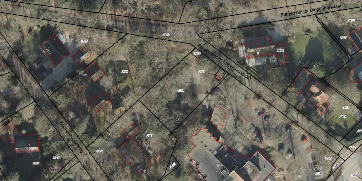 Gebruik de zoekbalk of klik op een perceel om informatie over het perceel te bekijken.