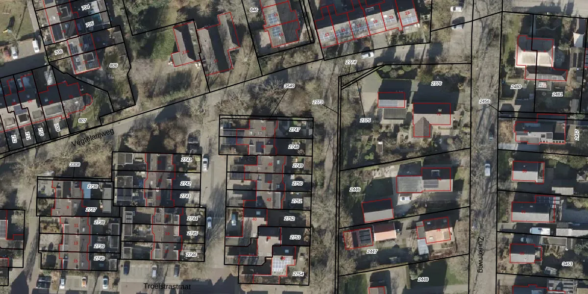 Gebruik de zoekbalk of klik op een perceel om informatie over het perceel te bekijken.