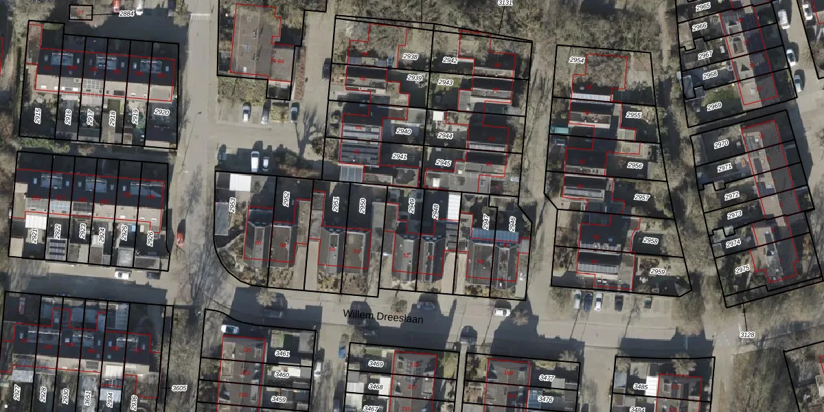 Gebruik de zoekbalk of klik op een perceel om informatie over het perceel te bekijken.