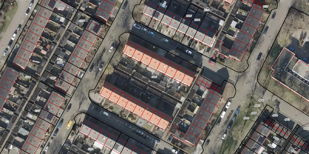 Gebruik de zoekbalk of klik op een perceel om informatie over het perceel te bekijken.
