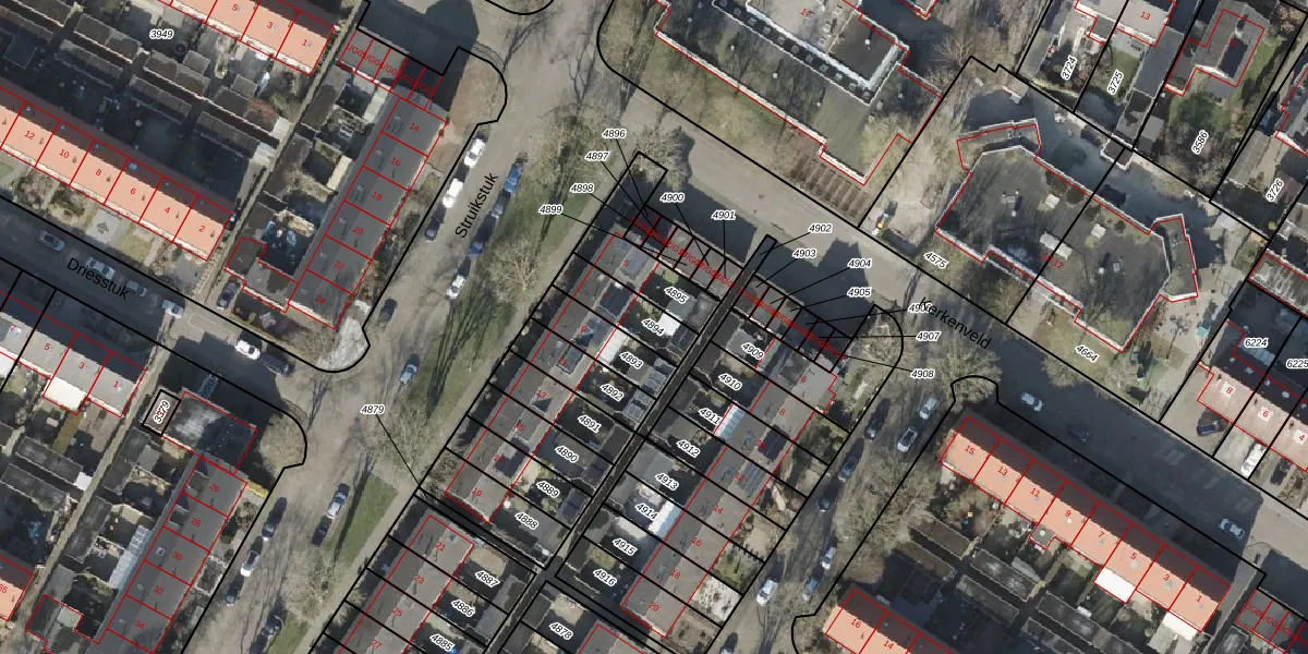 Gebruik de zoekbalk of klik op een perceel om informatie over het perceel te bekijken.