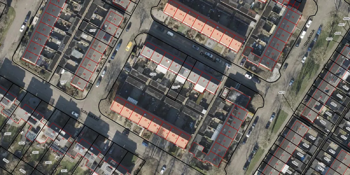 Gebruik de zoekbalk of klik op een perceel om informatie over het perceel te bekijken.