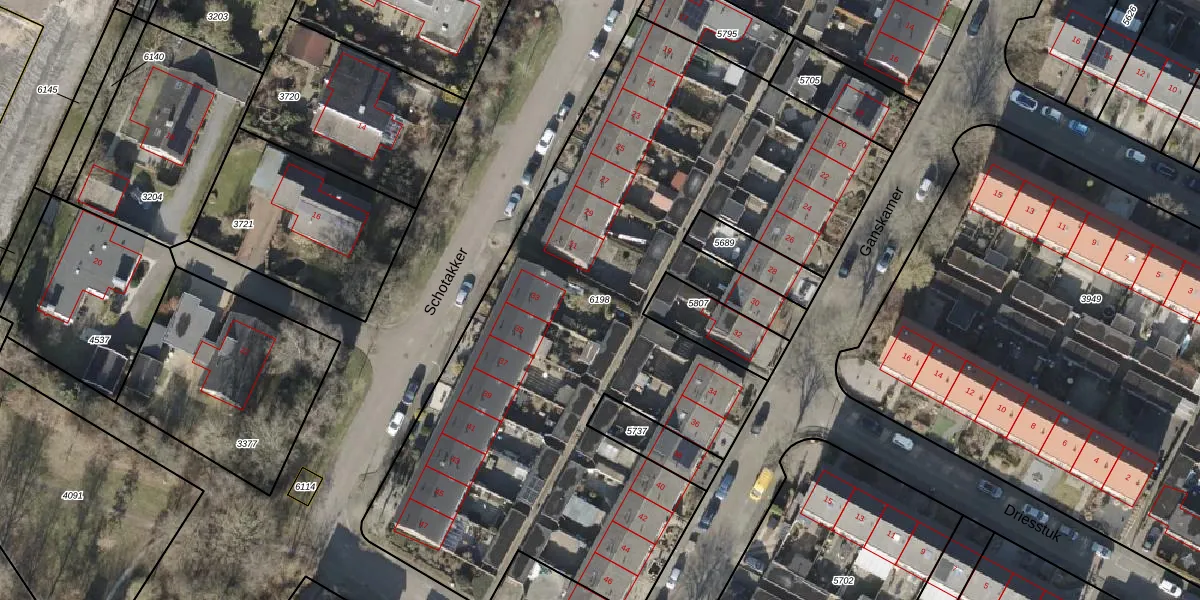 Gebruik de zoekbalk of klik op een perceel om informatie over het perceel te bekijken.